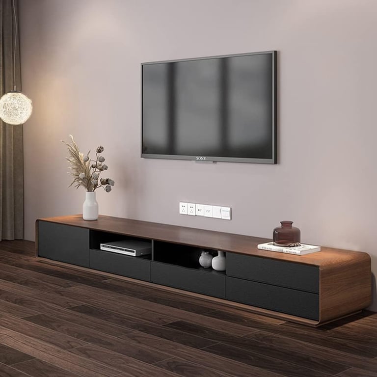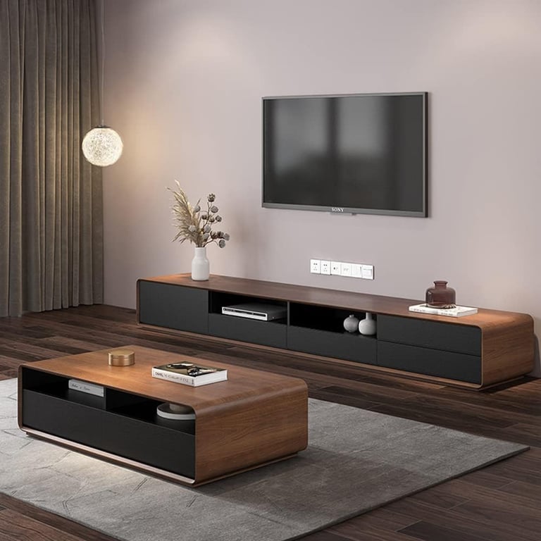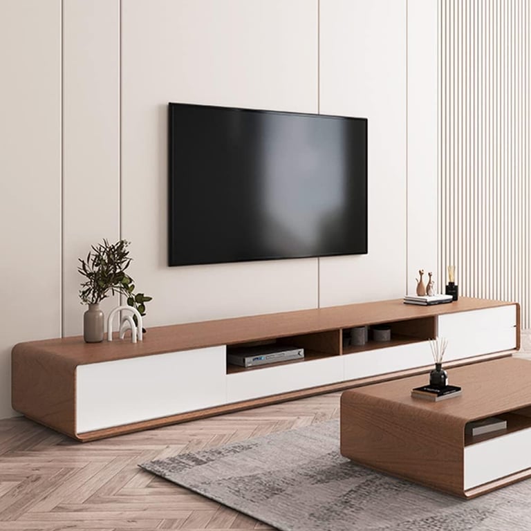 A beautifully crafted TV stand made from water-, crack-, and insect-resistant natural wood—designed to add warmth, durability, and smart storage to any living space.